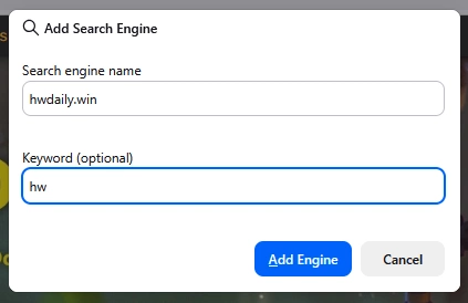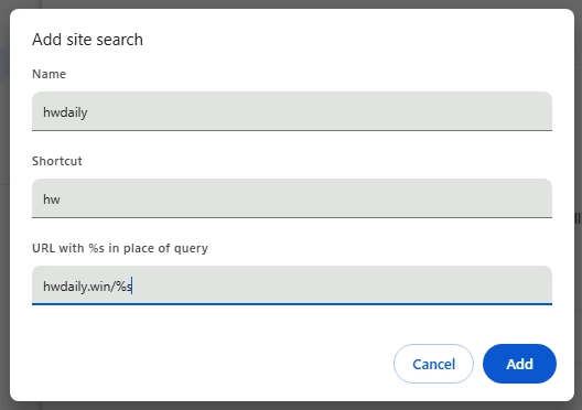 create a bookmark with the following code: javascript:void(window.location='https://hwdaily.win/'+encodeURIComponent(prompt('Search HWDaily')))